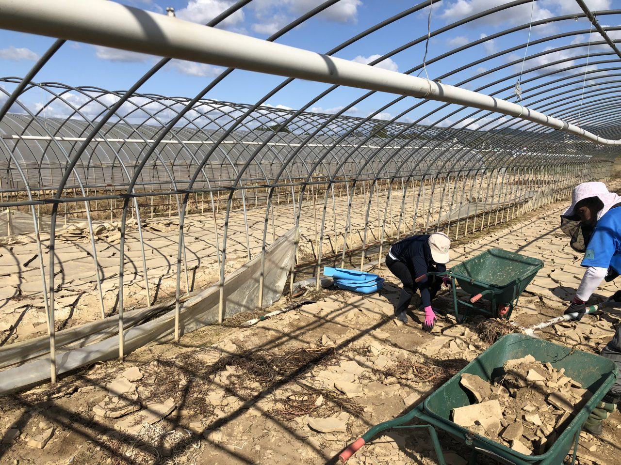 12棟あるハウスの中で被害が大きかった4棟の土砂はほとんど撤去することができました。