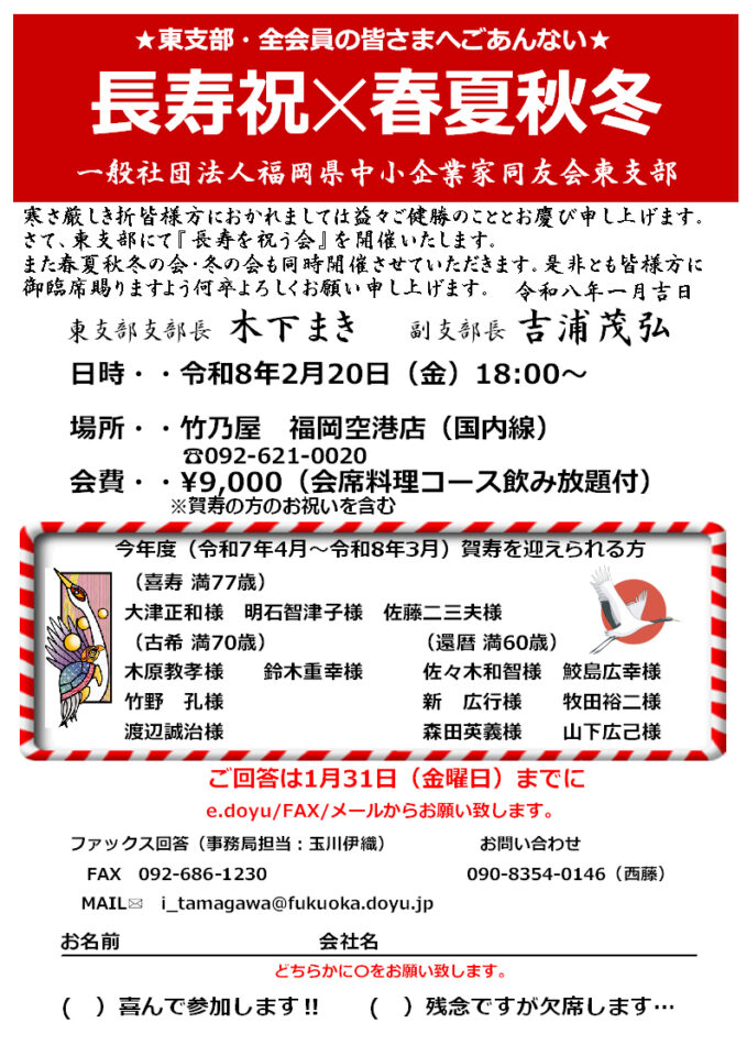 長寿祝×春夏秋冬の会のご案内
